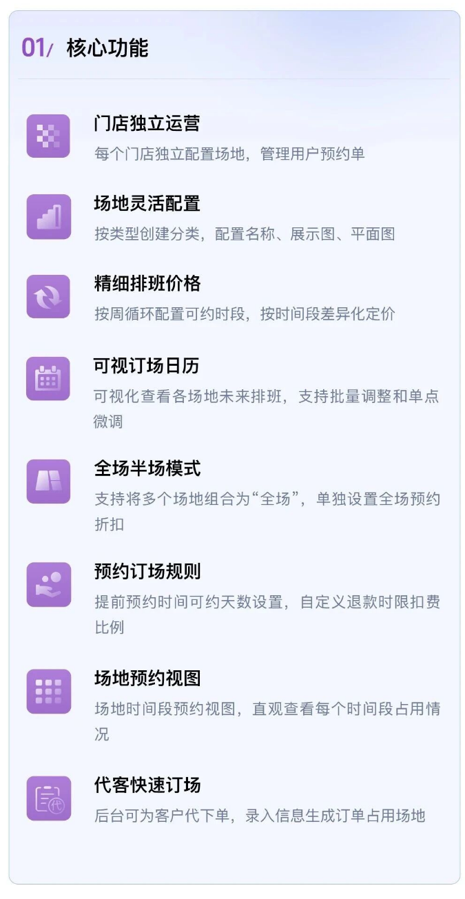 不止是基础预约,更有全方位管理功能,覆盖场馆运营全场景,让管理更轻松、更精准: