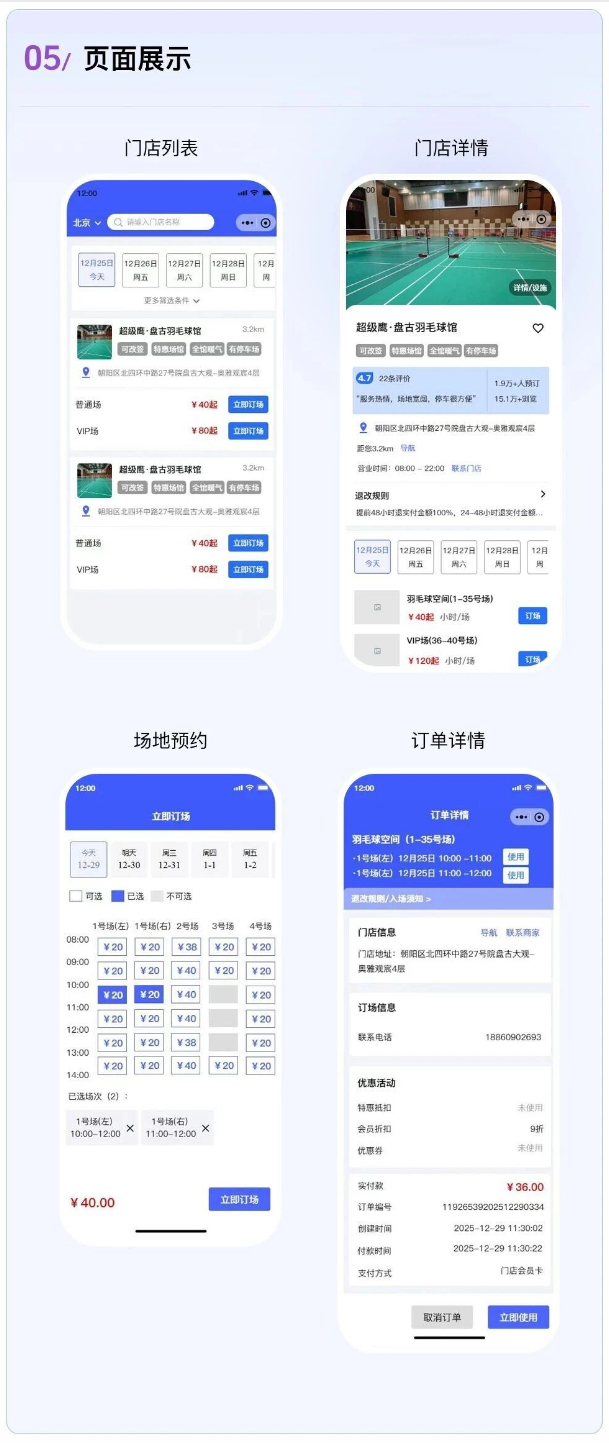 • 门店独立运营:每个门店可独立配置场地、管理用户预约单,多门店经营也能有条不紊,无需交叉核对,节省管理成本。